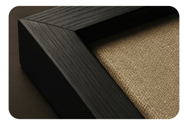 • Frame Dimensions: The width (the front of the frame) is 9 to 14 mm wide (0.35" to 0.55"), with thickness varying by region— 42 mm (1.65") in North America and 32 mm (1.26") in Europe. A 12 mm (0.45") gap between the canvas and frame ensures a snug fit.